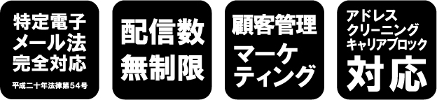 | ダブルオプトイン | 特定電子メール法を遵守した登録方式採用。 |