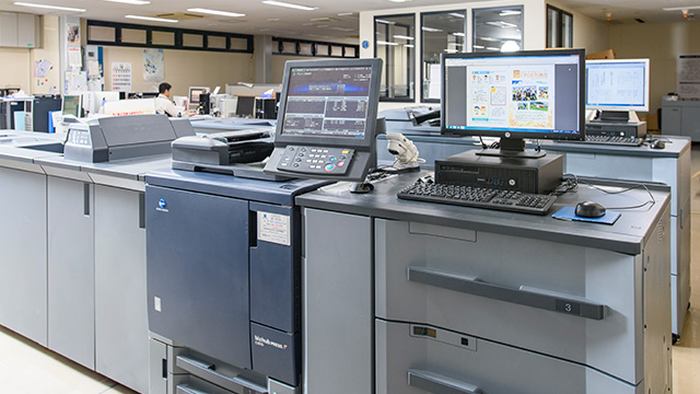 弊社では用途に応じてカラー機、モノクロ専用機をご用意。中綴製本や折加工もオンデマンド機独自に可能です。